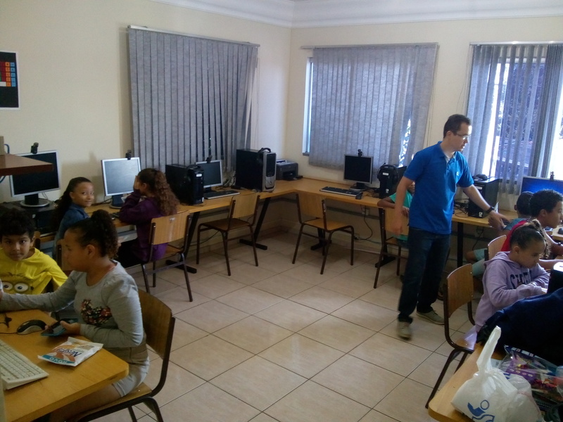 Neste artigo, fotos do voluntário Paulo, na oficina de computação.