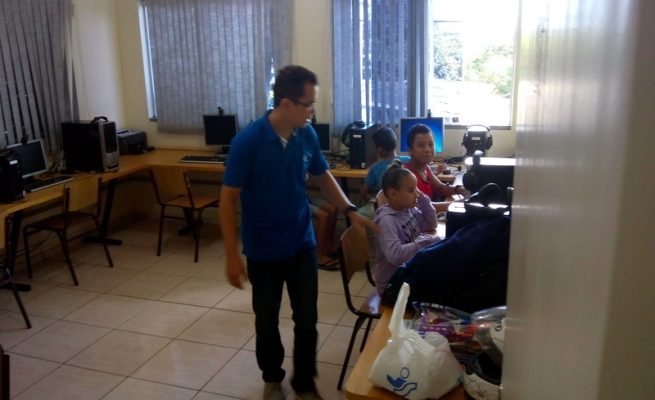 A empresa Amdocs, através de seus voluntários, também auxilia no desenvolvimento dos trabalhos de nossa instituição. Neste artigo, fotos do voluntário Paulo, na oficina de computação.